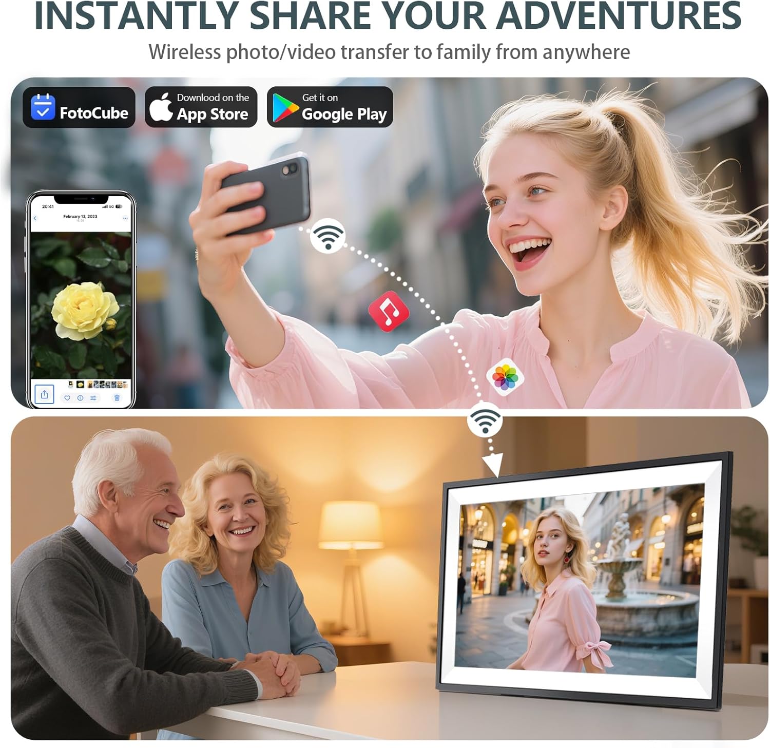 You can send photos and short videos instantly through a companion mobile app (such as Frameo) using Wi-Fi. It takes just a few taps to share moments with your loved ones.